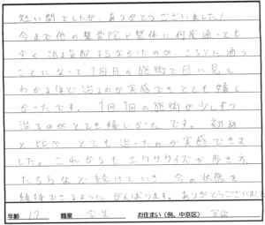 最初こんなに優しい施術で、本当に治るのか、不思議でした。