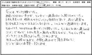腰痛 肩こり 頭痛 産後骨盤矯正 (30代女性 主婦 京都市中京区)22 最終更新日時 : 細江トオル産後、ママ友にどこか骨盤見てくれるところへ行くべきとすすめられて施術院を探すことに。1度通院してみるとすごく信頼できる対応の先生で続けて通うことを決意。産後ケアが終わってからも育児の疲れによる(抱っこ・おんぶ・・・その他)コリが痛いので通っています。赤ちゃんだった娘も2歳半になりましたが、まだまだ手がかかり、よくコリをつくっていまう生活です。なのでまだまだ先生の手助けを必要としています。30代 主婦産後の体の不調は産後の整体、産後の骨盤の不安定感、体形の戻りには産後骨盤矯正↓ FacebookXBlueskyHatenaCopy