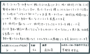肩こり 首こり 膝痛(50代女性 自営 京都市北区)133
