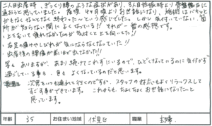 腰痛 肩こり 妊娠中の症状(20代女性 看護師 京都市北区)141 最終更新日時 : 細江トオル お世話になっています。当日の突然の予約でも対応して下さるのがたすかります。 休みが前日遅くにしかわからないので・・・。 妊娠中は施術を断られるところも多い中、見てもらえてとてもとてもたすかりました。 体重が前の子の時より増加がはげしいので産後も体のメンテナンスをしてもらいながら 元の体重にもどるようにしたいと思っていますので、よろしくお願いします。 28才 看護師 妊娠中の腰・お尻・足の痛みやコリ、肩こりでお悩みの妊婦さんはこちら↓ 産後の体の不調は産後の整体、産後の骨盤の不安定感、体形の戻りには産後骨盤矯正↓ 子供をあずけるあてがない、子供も一緒に連れていきたい方は、お子様も一緒にご来院↓ FacebookXBlueskyHatenaCopy