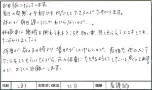 肩こり 腰痛 産後骨盤矯正(30代女性 主婦 京都市右京区)142