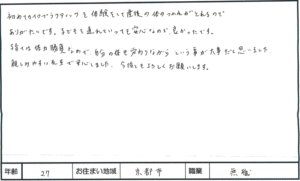 恥骨痛 産後骨盤矯正(30代女性 医師 京都市南区)144 最終更新日時 : 細江トオル出産後から恥骨痛が出現し徐々に増悪した為、通院を決意しました。整体や接骨院などで施術を受けたことがなかったので正直初めはその効果がどれ程のものなのか・・・とまゆつばでしたが、2回目から確実に痛みが軽減するのを自覚することができました。日々の生活においてのアドバイスなどもいただくことができ大変助かりました。院内がきれいで落ち着いたところも大変よかったと思います。30代 医師産後の体の不調は産後の整体、産後の骨盤の不安定感、体形の戻りには産後骨盤矯正↓ FacebookXBlueskyHatenaCopy