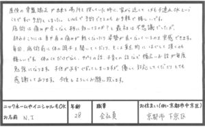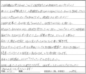 肩こり(30代女性 主婦 京都市右京区)321 最終更新日時 : 細江トオル 自分ではそれほどではないと思っていた肩こり。 美容師さんに凄く凝っているけど大丈夫ですか?と言われ、そういえば毎日疲れているなあと思い、 知り合いにおススメして貰っていたこちらに行くことを決めました。 整体自体が初めてで不安もありましたがリラックスした空間で、 施術後は体がとても軽くなりやっぱり凄く凝っていたんだなあと思いました。 姿勢の悪さも気になっていたのですが、それを教えて頂け、 正しい歩き方など根本的なことも教えて頂けるので体の調子の良さにつながり、通ってよかってなあと思います。 36才 主婦 FacebookXBlueskyHatenaCopy