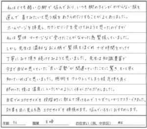 毎回少しずつ内容が違って、私の脚の状態を見ながら丁寧に施術してくださっているのだなと感じました。