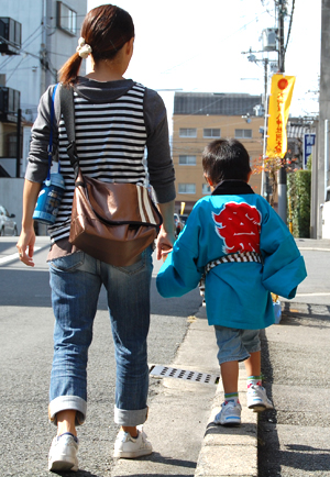 お母さんと一緒に神社へ