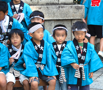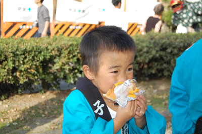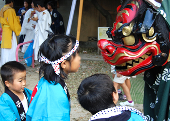お旅所で休憩 獅子舞なんて恐くないぞ~