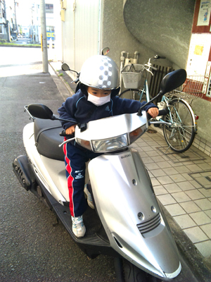 バイクで颯爽と・・・・。 2009年11月2日 最終更新日時 : 2009年11月2日 toru-chiro 息子さんはバイクに乗って「ブィーン!ブィーン」と風を感じています・・・と思います このバイクの名は「トオルカイロライナー」だそうです 小さい暴走族ですね FacebookXBlueskyHatenaCopy