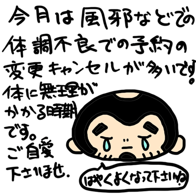 今月は風邪ひかれた方とか多いですね。