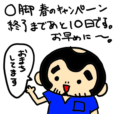 O脚キャンペーンもあと10日で終了です。 2017年5月21日 最終更新日時 : 2017年5月21日 toru-chiro O脚の春のキャンペーンは5月31日でおしまいです。 6月から料金設定が少し変わります。 今の料金+キャンペーンでO脚矯正受けれるのは今だけですよ~。 FacebookXBlueskyHatenaCopy