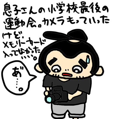 息子さんの運動会 2017年9月23日 最終更新日時 : 2017年9月23日 toru-chiro 今日は息子さんの小学校最後の運動会だったので、営業してたんですが、合間にいきました。 カメラに望遠レンズを装着して、小学校へ。 早速撮ろうとしたらシャッターがおりない・・・。 メモリーカード入ってませんでした・・・ショック。 FacebookXBlueskyHatenaCopy