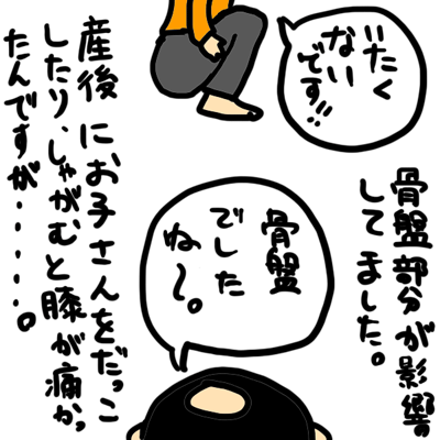 産後にちょっとしてから、しゃがんだり立ったりする時に膝まわりに痛みが痛いママさんは結構いらっしゃいます。