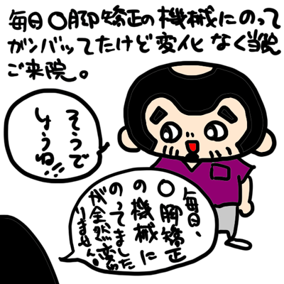 O脚矯正の機械がダメなわけではないと思いますが、他が一切できてませんでした。