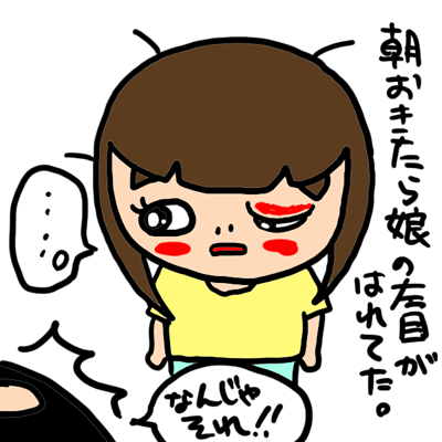 今朝、朝が超弱い娘さんが鏡の前で何やらぼーぜんとしてるので寝ぼけてるんかと思ったら左目がめちゃ腫れてました。