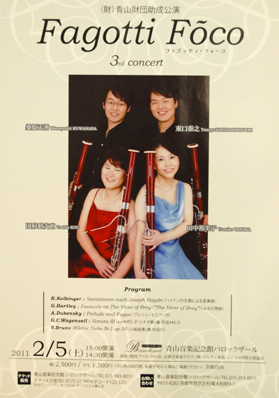 (財)青山財団助成公演 Fagotti Foco 3rd concert