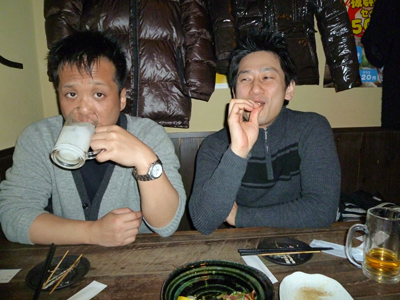 セミナーの内容がよかったんで疑問が出て居酒屋でテキストを見直してたらカルマンティーチャーがきましたので新年会開始