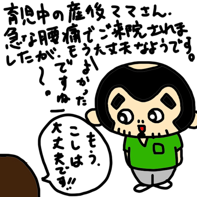動くのもキツイ腰痛で先週子連れで駆け込んでいらっしゃいました。