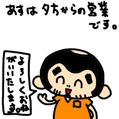 明日28日(日)は夕方からの営業です。
