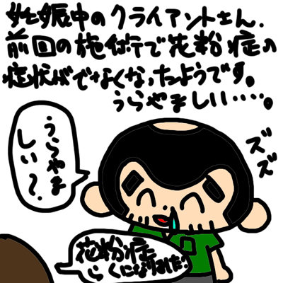 前回の施術後に花粉症の症状がまったくでなくなったようです。