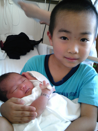 息子さんのぎこちない抱っこに娘さんはちょっと嫌がってる感じ
