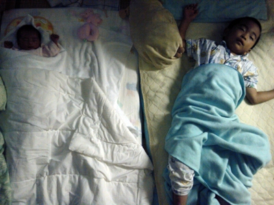 娘さんは全然泣かないし、チョッカイかけても全然おきません