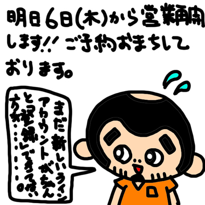 明日6日(木)から営業再開!