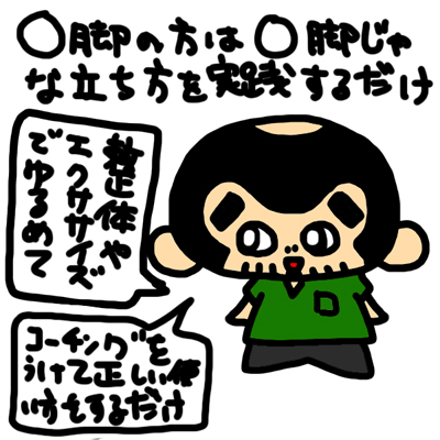 O脚の方はO脚じゃない立ち方を実践するだけです。