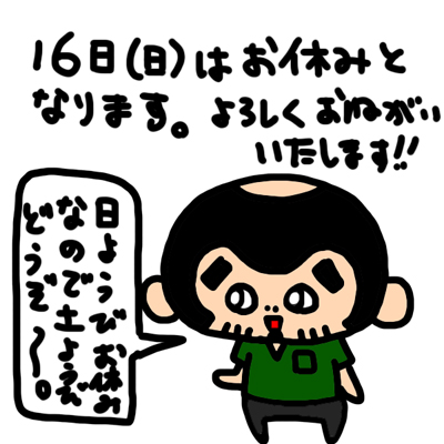 日曜日お考えだった方は15日(土)にお願いいたします。