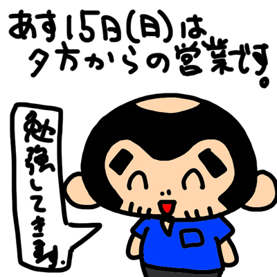 15日(日)は夕方から営業