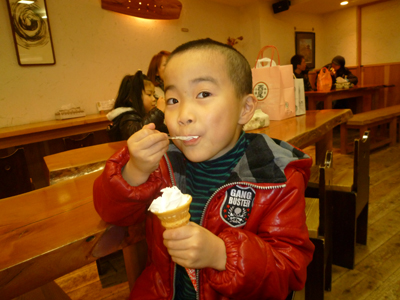 おなかすいたとアイスをせがまれ