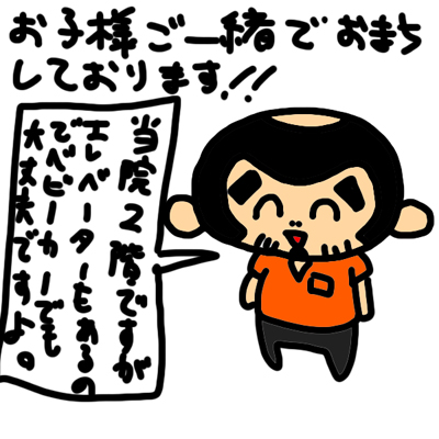 当院は2階にございますが、エレベーターがございますので、ベビーカーでご来院して頂いて大丈夫です。