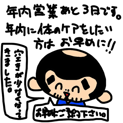 年内にお体のケアをしたいクライアントさんはお早めにどうぞ!!