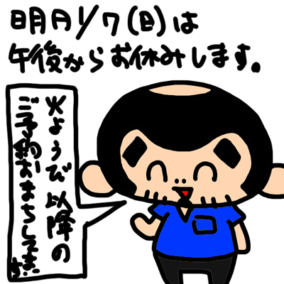 明日1/7(日)午後からお休み