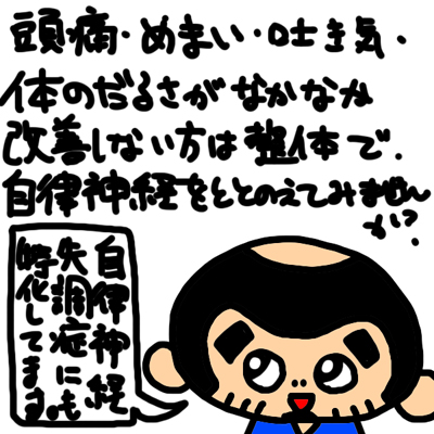 数ヶ月以上も頭痛やめまい吐き気体のだるさがなかなか改善しないという方は是非自律神経失調症に特化してる整体院で整体をうけてみてください。