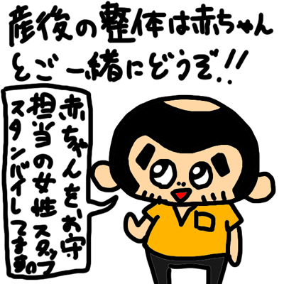 また赤ちゃんご一緒でOKの整体院なので、赤ちゃんをあずける環境にないママさんには大変喜んで頂いております。