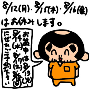 明日8/11(日)は勉強会参加のため、夕方からの営業となります。