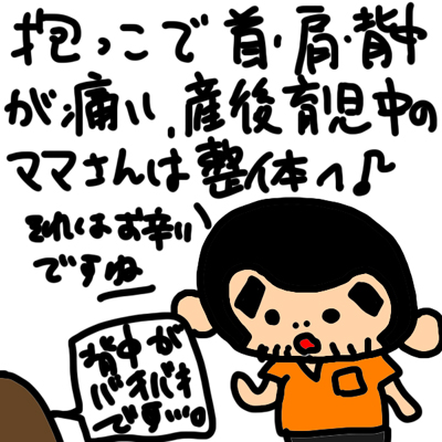抱っこで首や肩や背中が痛い、凝ってるという産後育児中のママさんは整体でお身体ケアしてください!