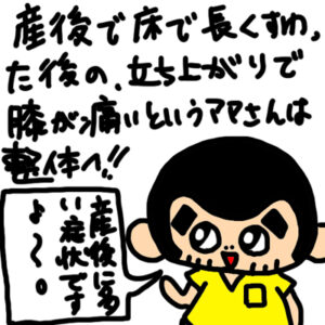 腰痛がある場合は、産後のエクササイズもできませんし、痛みのを我慢して体操なんてよくありませんので。