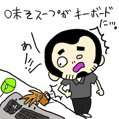 PCのキーボードに味噌汁を・・・。