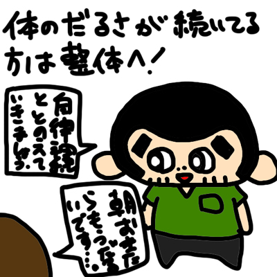 体のだるさがずっと続いてしんどい方は整体をご利用ください。