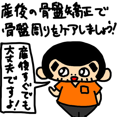 わかりやすく、骨盤矯正とお伝えしてますが、産後は全身トータルでみますので、骨盤だけどうこうすることはありませんのでご安心ください。