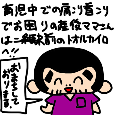 元々、慢性的に肩こり首こりがあった産後のママさんが、育児疲労で肩こりや首こりがひどくなってることがかなりあります。