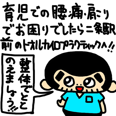 産後から全然体のケアをせず、急に腰痛や肩こりがひどくなったという方は是非、二条駅前のトオルカイロプラクティックへお越しください。