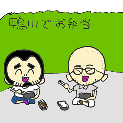 昨日はセミナーでして、お昼は鴨川でお弁当を食べました。
