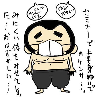 今日セミナーで施術を受けるのに、検査で上半身裸になりました。
