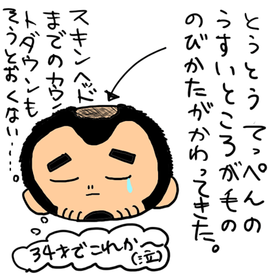 伸びない 2012年2月14日 最終更新日時 : 2012年2月14日 toru-chiro あぁ、スキンヘッドまでのカウントダウンが刻々と・・・。 もうええねん。 FacebookXBlueskyHatenaCopy