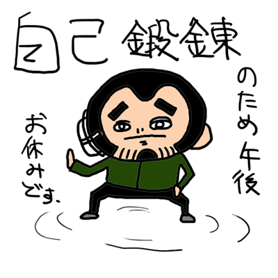 今日は自己鍛錬のため午後はお休みいたします。