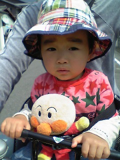 息子さんはチャリンコに乗るときは絶対アンパンマンも一緒です