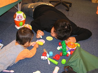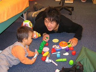 今、息子さんとしろくま先生は一緒に遊んでいます