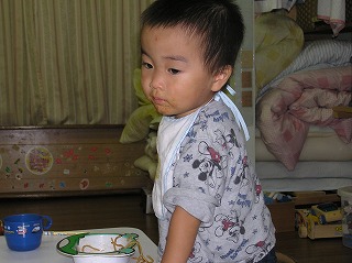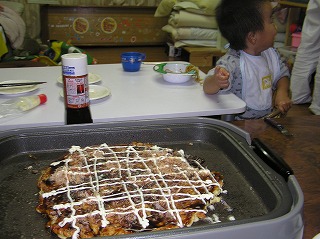 息子さん「おかあしゃ~ん、お好み焼きおいしそうやな アチチやな」