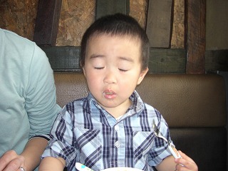 息子さん「もぐもぐ アチチやけど もぐもぐ おしぃ」